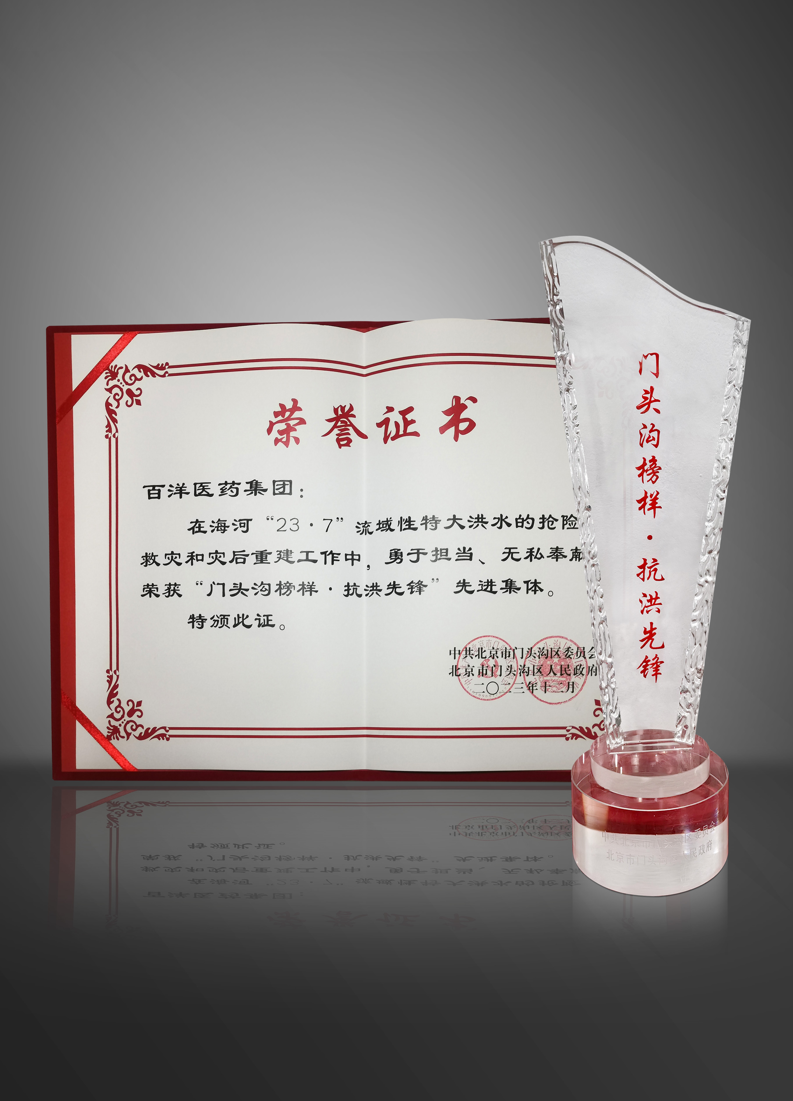 2023年华体会荣膺“门头沟榜样·抗洪先锋”先进集体荣誉称号
